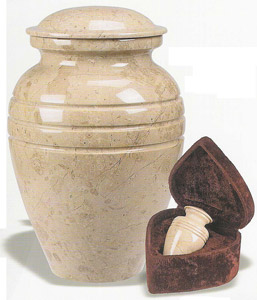When selecting an urn, you might want to choose one that reflects the deceased. It may reflect the individual's hobbies with scenes of sports or other pastimes. Or you may want to find a decorative urn. Funeral urns are available in wood, ceramic, marble, cast bronze, granite, and mother of pearl. Keepsakes are usually the miniature copy of the urn used for the deceased. If internment, burial or scattering was chosen for the deceased, a keepsake is a beautiful way to remember the individual.